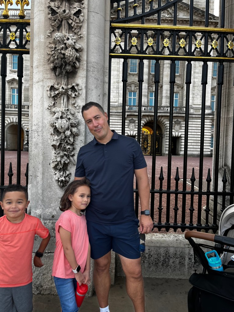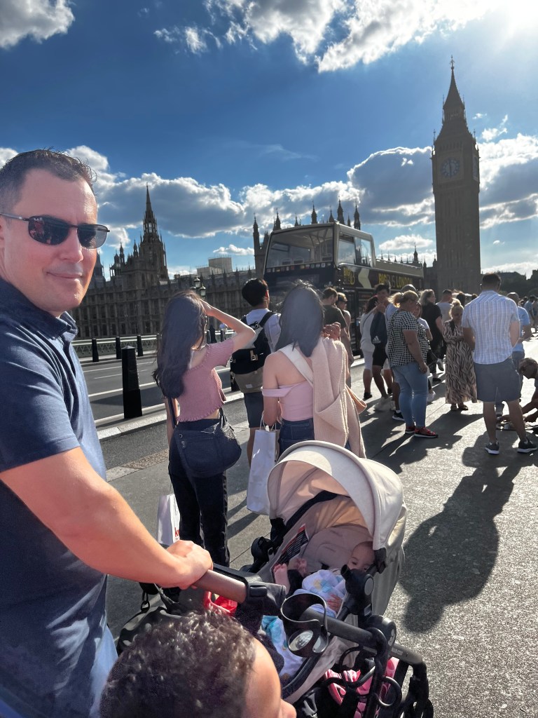 With the family awake, we started our walk towards Buckingham Palace to show the kids where the queen lived. It was a slow walk after stopping at Jubilee park for some drinks and to ride the carousel. After walking through some very touristy crowds, we made it to the front gate, took some obligatory photos, then found our way back on the bus. The best part was getting the kids to ride on the top, with the stroller space on the lower deck for Diane and I.